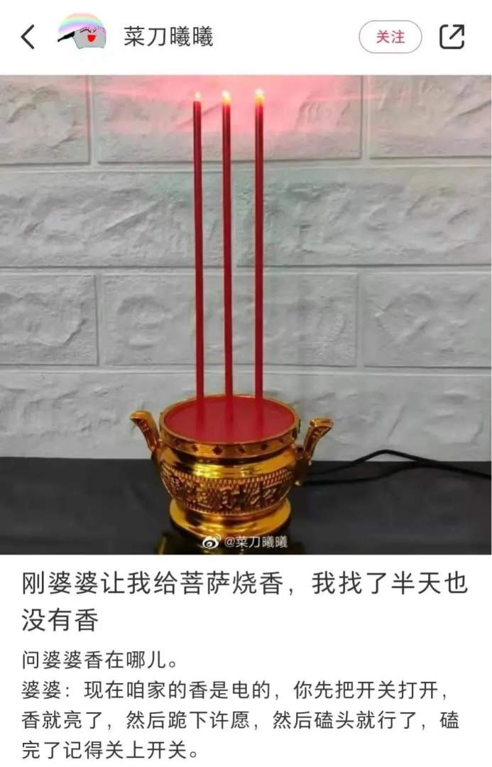 烧香点开关,骗菩萨。